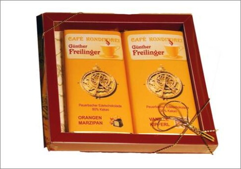 Unsere bewährten Produktlinien Edelschokoladen und Peuerbachlebkuchen eignen sich bestens als Werbe- oder Weihnachtsgeschenke.